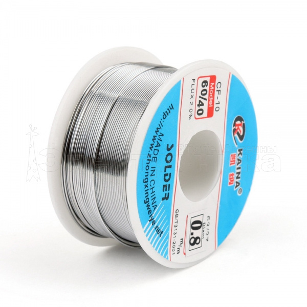Диаметр припоя составляет 0.8 мм, вес: 100 г., температура плавления: 190 C
